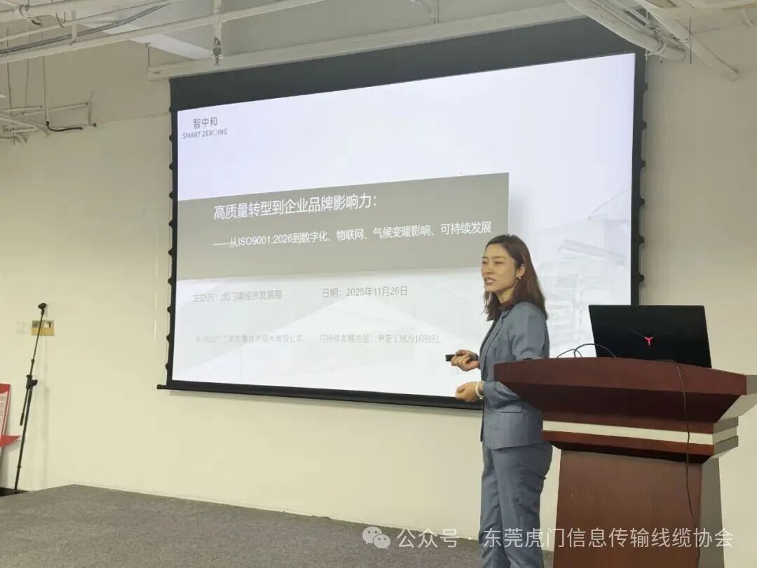 为全面提升线缆产业集群创新能力和高质量发展水平,更好服务企业转型升级,11 月 26 日上午,由相关主管部门指导举办的“线缆产业集群高质量发展专题培训”在虎门富民商务中心 23 楼会议室顺利举行。东莞市虎门信息传输线缆协会秘书处代表、多家线缆企业及相关单位代表参加了本次活动。